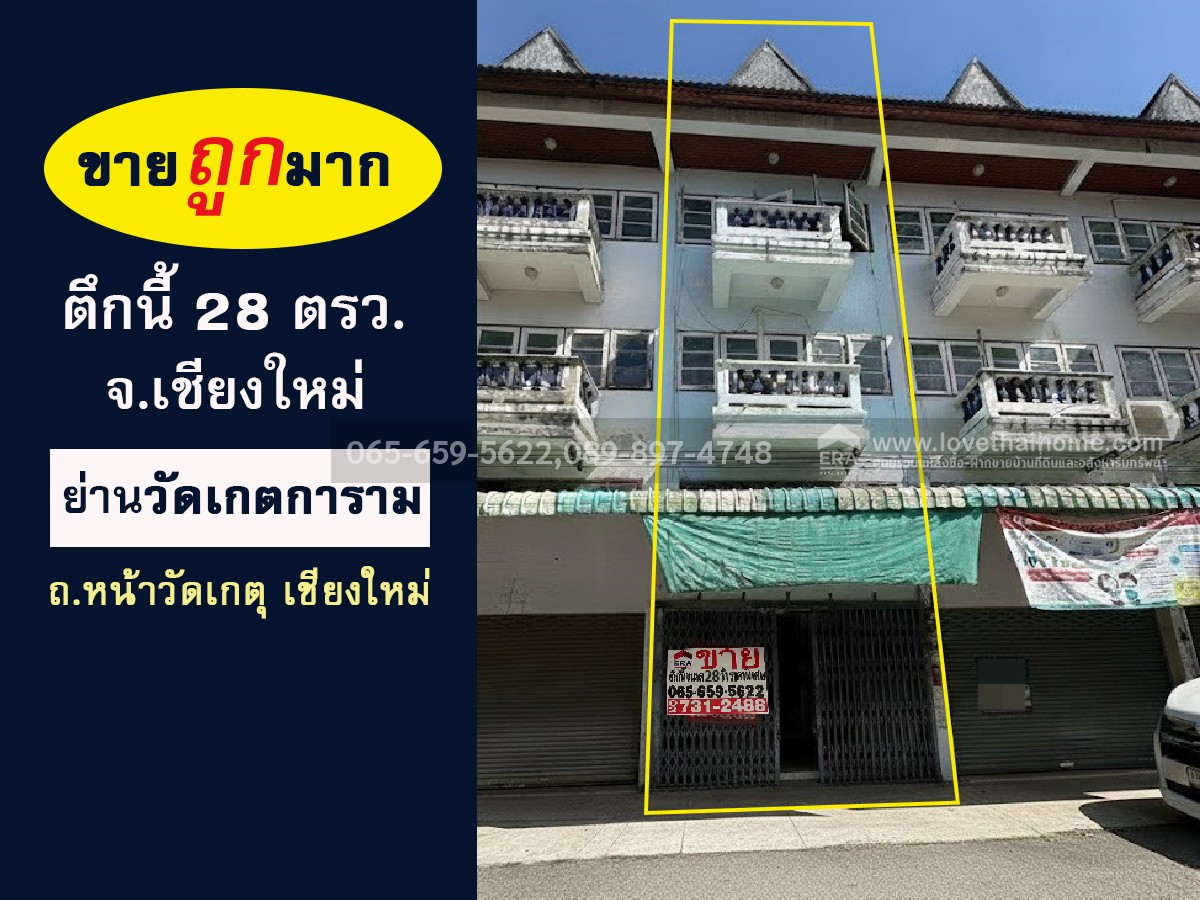 ขายอาคารพาณิชย์ 3ชั้นครึ่ง 28 ตรว. เมืองเชียงใหม่ ทำเลเยี่ยมยอด ย่านวัดเกตการาม ถ.หน้าวัดเกตุ ถนนสายวัฒนธรรมของเชียงใหม่ ขายราคาถูกมากเพียง 4.75 ล้าน ขอบอกจองด่วน!