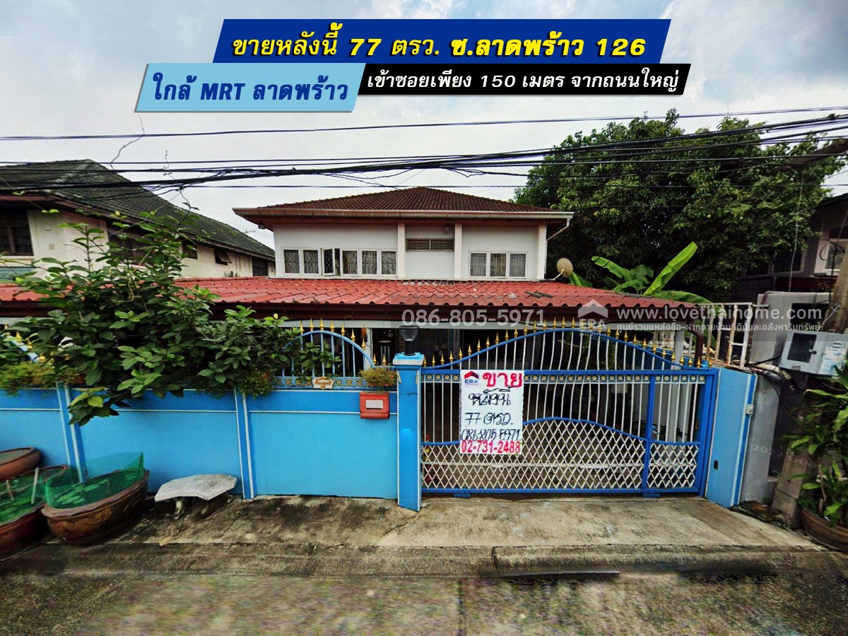 ขายบ้านเดี่ยว 2 ชั้น 77 ตร.วา ถ.ลาดพร้าว 126 เข้าซอยเพียง 150 เมตร ราคา 13.9 ล้าน