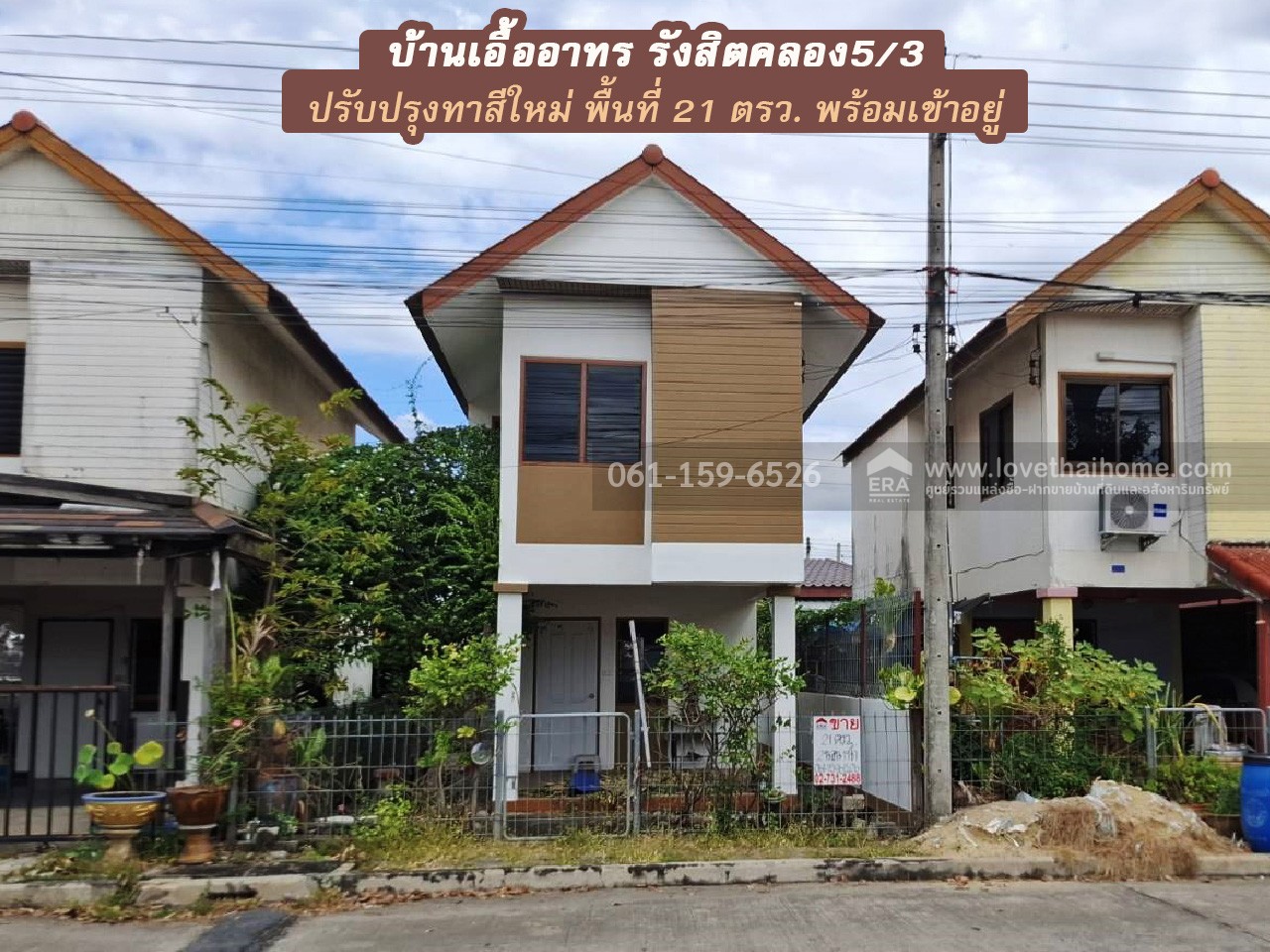 - ทาวน์เฮ้าส์ 2 ชั้น 21 ตรว. โครงการบ้านเอื้ออาทร รังสิตคลอง 5/3